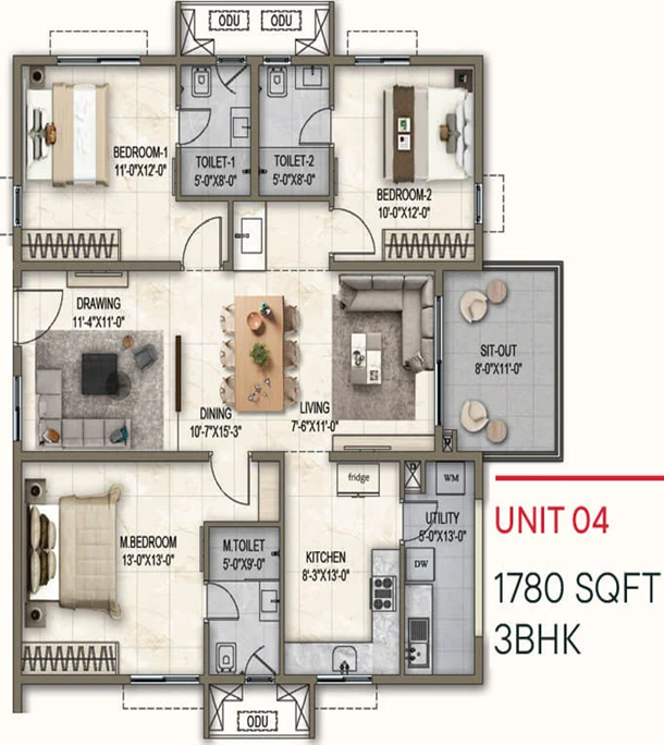 | 3 BHK + 3T (West) | 1780 - 2000 Sq.Ft | ₹ 2.18 Cr Onwards | |