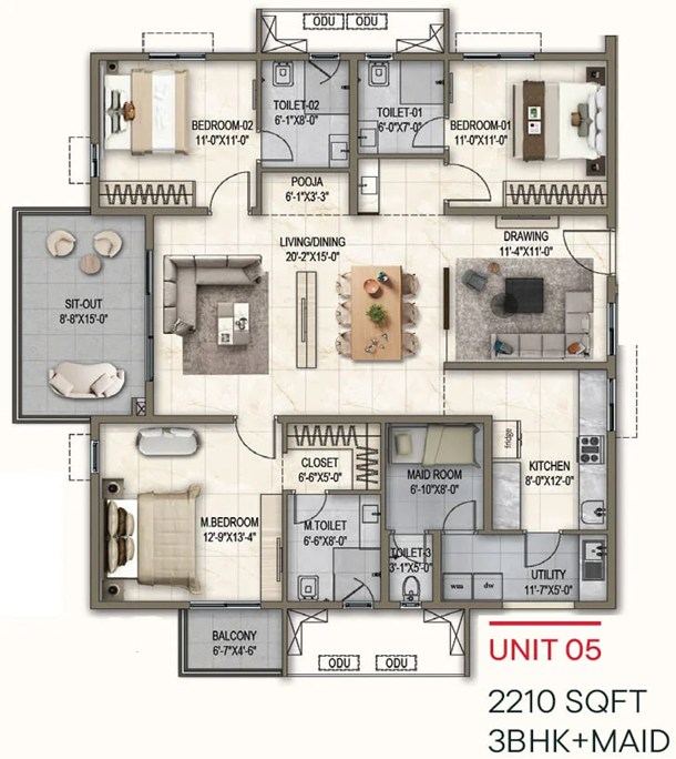 | 3 BHK + Maid (East) | 2210 – 2535 Sq Ft | ₹ 2.72 Cr Onwards | |