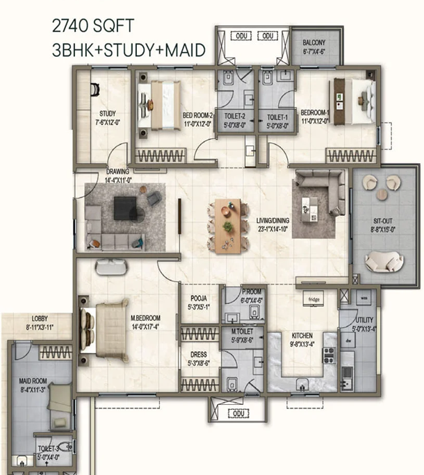 | 3.5 BHK + Maid (West) | 2740 Sq Ft | ₹ 3.37 Cr Onwards |